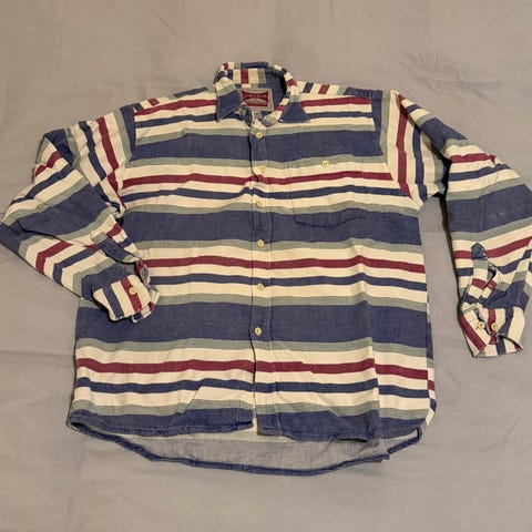 Så godt som ubrukt, strøken linskjorte fra Drake’s i en stripete variant med fantastiske farger. Skjorten har brystlomme med klaff, og perlemorskapper. Hvis jeg husker rett var denne en del av sommerkolleksjonen i 2020. Legger ved noen bilder fra Drake’s hjemmesider til inspirasjon.