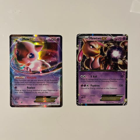 Pokémon Mew EX og Mewtwo EX samlekort holo