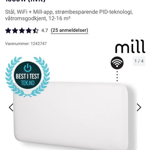 Mill PA400WIFI3 panelovn 400W i hvit utførelse. Vegghengt panelovn med WiFi-styring på 2,4 GHz. Anbefalt maks romstørrelse fra produsent: 6kvm.