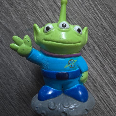 Disse karakterene er kjent for sine tre øyne, grønne hud og blå romdrakter med Pizza Planet-logoen på brystet. Figuren i bildet ser ut til å være en interaktiv eller bevegelig variant, muligens en "Dancing Alien" fra merket Thinkway Toys, som er kjent for å kunne bevege seg.