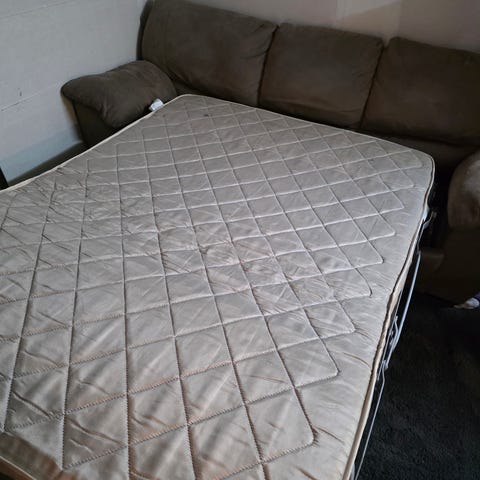 En av sengeribbene er knekt, men det har ingen betydning for at sengen fungerer som den skal.