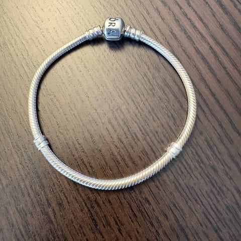 Pandora armbånd i sølv for dame. Armbåndet har klassisk slangekjede-design med Pandora-lås. Hovedmaterialet er sølv. Egnet til bruk alene eller med charms fra samme system. Passer som hverdagsarmbånd eller til mer formelle anledninger.