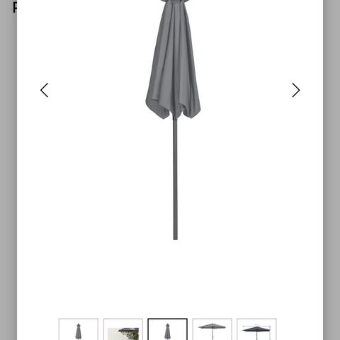 Lite brukt parasoll med sokkel i stein selges pga flytting. Veldig praktisk ettersom den kan tiltes.