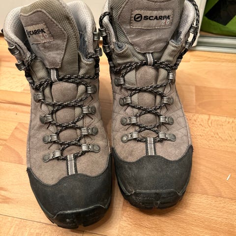 Scarpa Charmoz OutDry tursko i størrelse 41. Modellen er en høy tursko utviklet for fotturer og toppturer. Skoen har Overdel med syntetiske materialer og tekstilpaneler, samt forsterket tå- og hælparti. Yttersålen har grovt mønster for godt grep på ujevnt underlag. Opprinnelig pris 3799,-