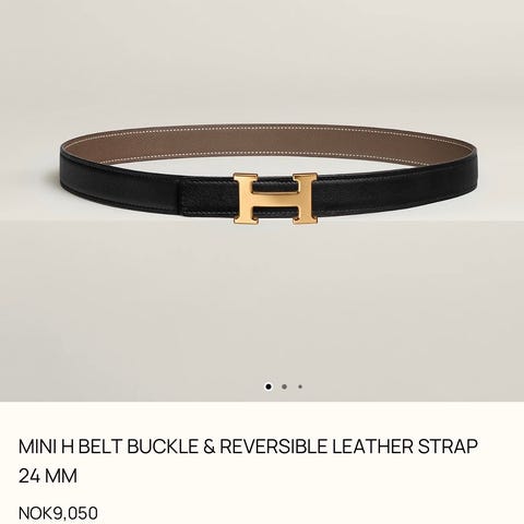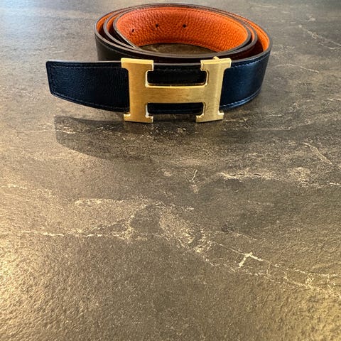 Hermès belte i sort skinn med klassisk gullfarget H-spenne (Constance-modell).
