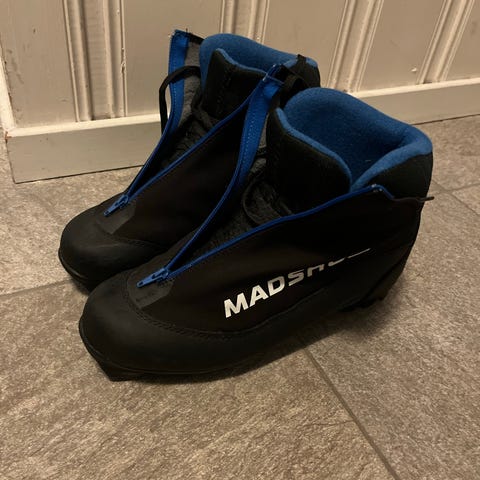 Madshus Raceline langrennsstøvler i størrelse 27 (EU). Støvlene er i fargen svart med røde detaljer. Overdelen har glidelås som dekker snøringen for å beskytte mot snø og fukt. Sålen er tilpasset Rottefella NNN-system. Egnet som klassiske langrennsstøvler for bruk på ski med kompatible bindinger.