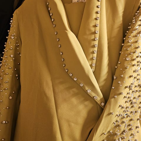 Selger en helt rå blazer i en fresh limegrønn farge. Denne skiller seg virkelig ut med utallige påsydde stener og perler på ermene og langs kragen. Perfekt til fest, bryllup eller når du vil ha et antrekk som glitrer litt ekstra.