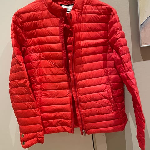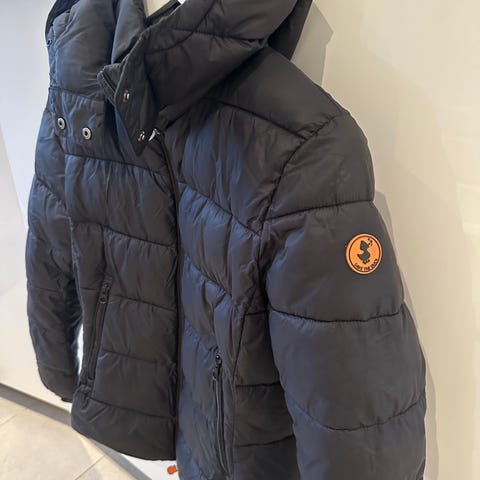 Save The Duck dunjakke for dame i størrelse M. Jakken er oransje og har quiltet mønster med horisontale sømmer. Lett, vattert modell med glidelås i front og rund hals. Materialet er i et glatt ytterstoff. Egnet som ytterjakke i overgangssesonger eller som lett isolasjonsjakke under annen ytterbekledning.