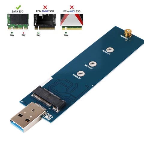 Støtter m.2-brikker både med NVMe og SATA grensesnitt. NVMe med M key, NVMe Express med B+M key og SATA med B+M key. mSATA støttes ikke. Testet med SSD fra Samsung, Kingston, WD, Intel og Crucial.