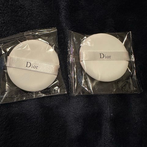 Yves Saint Laurent sminkesvamper i rund form. Settet består av to svamper, én svart med YSL-logo og én beige. Svampene kan brukes til påføring og jevning av sminkeprodukter som foundation, pudder eller annen base. Egnet for generell bruk i ansiktssminke.