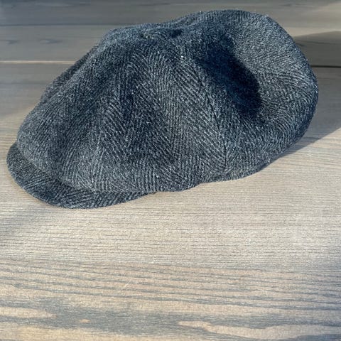 Hampton Republic 27 sixpence for herre i størrelse L/XL. Lue i grått hundetannsmønster, laget i bomull, polyester, ull og akryl. Innside i bomull med fôr og kantbånd. Passer som hodeplagg til hverdagsbruk og mer formelle anledninger.