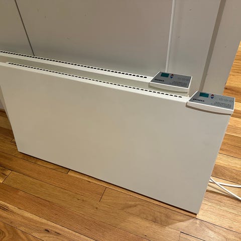 Målene på bildene viser omtrentlige ytre dimensjoner på ovnen. Egner seg for mindre rom der det er behov for elektrisk oppvarming med veggmontert panelovn i glass.