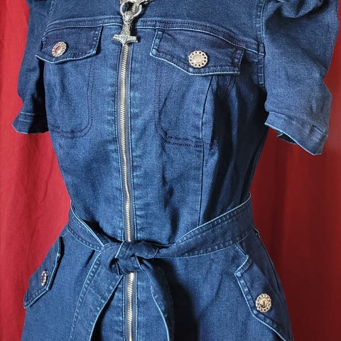 American Vintage kjole i størrelse S for dame. Kjolen er ermeløs med enkel, rett fasong og rund hals. Fargen er mørk blå. Materiale i bomull som gir et mykt og lett uttrykk. Passer til hverdagsbruk eller som lag-på-lag-plagg under jakker og gensere.