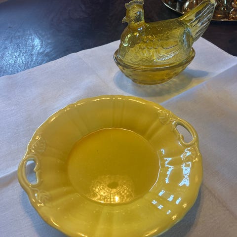 Vintage høne i gul/amber