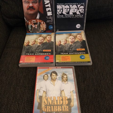Selger 9 stk DVD med litt forskjellig komedie Stand-Up og TV-show fra blant annet Team Antonsen, Ylvis, BoyzVoiced, Snabb Grabbar, En usedvanlig fin kveld Dagfinn, Beat for Beat, Raske Menn. Pent brukt. Selges samlet.
