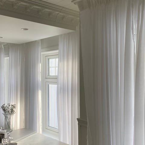 Ensfarget hvite kvalitets gardiner i florlett look.