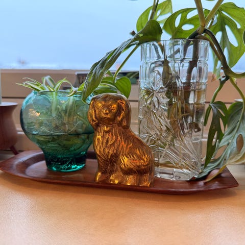 Vintage Cocker Spaniel med en liten valp i bånd i Kitch stil. Trolig fra 1960 tallet. Usikker om det er laget i tynt metall eller noe. Laget i Japan ofte kjent som "anthropomorphic dog family" eller "dogs on a chain" Kan send kr 69,- i frakt tillegg. Tar forhåndsbetalt med vips.