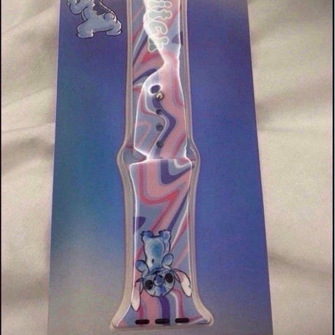 Primark AirPods deksel med hjerteprint og dekorative perler. Passer til AirPods 1 og 2. Gjennomsiktig materiale med lilla og rosa hjerter og perler i matchende farger.