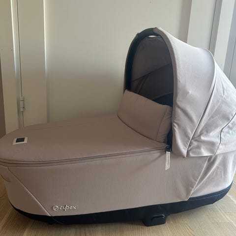 Cybex liggedel til barnevogn i mørk blå farge (navy blue). Liggedelen har kalesje med integrert vindu og beskyttelse mot vær og vind. Den festes på understell fra Cybex (vises som illustrasjon på bildet). Egnet for spedbarn som skal ligge helt flatt i vognen. Stofftrekket er i tekstilmateriale, og liggedelen har hard bunn og myk innvendig liggeflate for barnet.