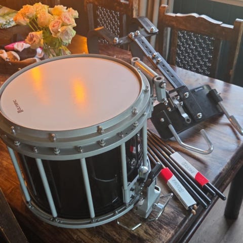 Denne trommen fremstår som ny da den er meget lite brukt, stort sett kun brukt på øvingslokalet.