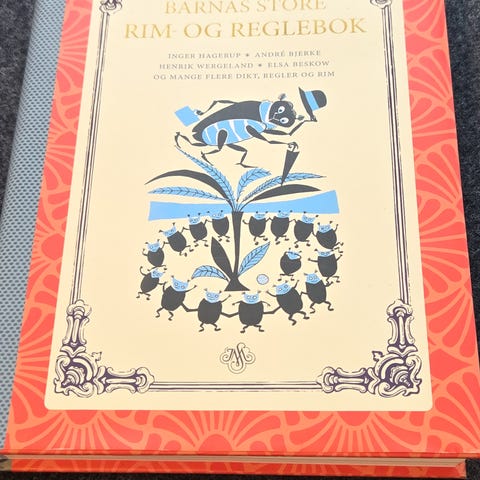 Barnas store rim- og reglebok barnebok med klassiske og nyere rim og regler for barn. Boken inneholder illustrerte sider med tekster satt opp i versform. Egner seg til høytlesning og egenlesning for barn. Innbundet utgave med fargeillustrasjoner.