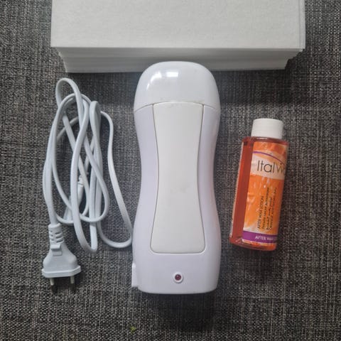 Wax Heater voksvarmer for oppvarming av ulike typer voks til hårfjerning. Enheten har justerbar temperaturkontroll på fronten og avtakbar metallbeholder for enkel rengjøring. Medfølgende rosa voksperler kan smeltes direkte i beholderen. Passer til hjemmebruk for oppvarming av hardvoks eller andre kompatible vokstyper. Funker meget bra! Selges kun fordi jeg ikke bruker den lenger selv.