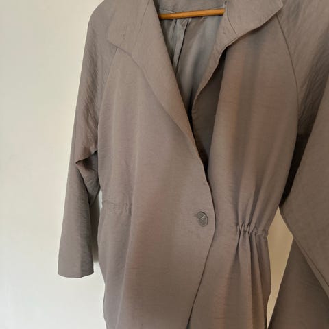Løs blazer fra Weekday i størrelse 36. Passer også fint 38. Veldig kul, sommerlig grønnfarge. Behagelig passform. Er en flenge i foret (se bilde).