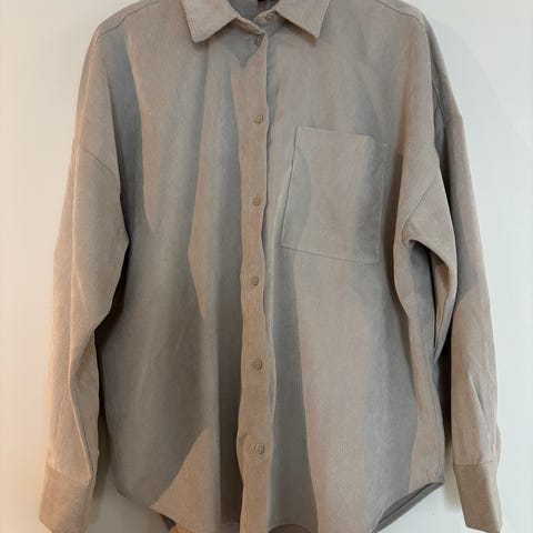 Beige skjorte i cord i str L fra flattop. Brukt med mye bruk igjen