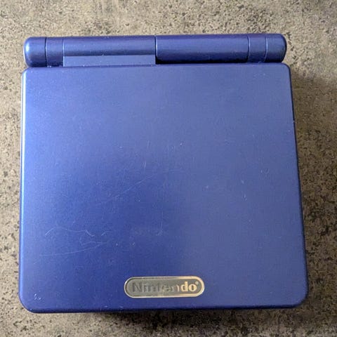 Nintendo Game Boy Advance SP håndholdt spillkonsoll i blåmetall farge.