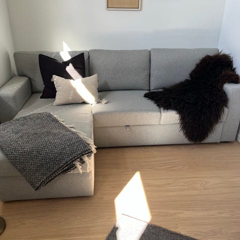 Selger en 3 seters xl sofa i grå tekstil fra Bohus.