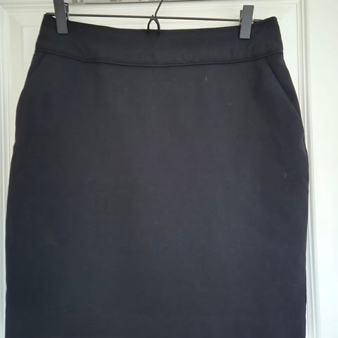 H&M skjørt for dame i størrelse 36. Skjørtet er svart og har knappelukking foran langs hele midten. Det har høyt liv og er fôret på innsiden for økt komfort. Passer til hverdagsbruk eller mer pyntede anledninger, og kan kombineres med ulike topper og strømpebukser etter sesong.