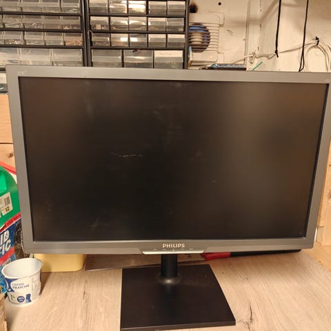 HP E240 skjerm brukt på hjemmekontor men ikke i bruk lenger. En liten ripe på skjermen men ellers i bra stand