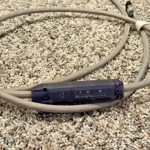 Et par meget pent brukte MIT MITerminator 3 høyttalerkabler i ca. 2,5 meters lengde (8 fot).