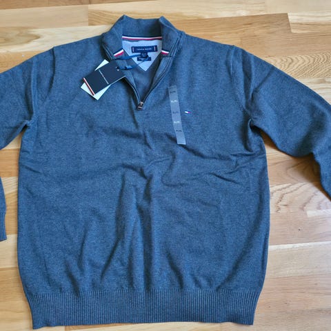 Strikket cardigan i bomull fra Tommy Hilfiger størrelse XXL. Striper, ribbestrikkede kanter og og knappelukking.