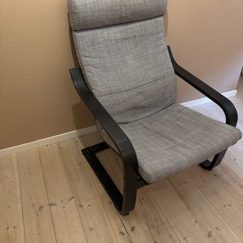 Stoffet er slitt og har et hull i sitteputen. Ellers i god stand.