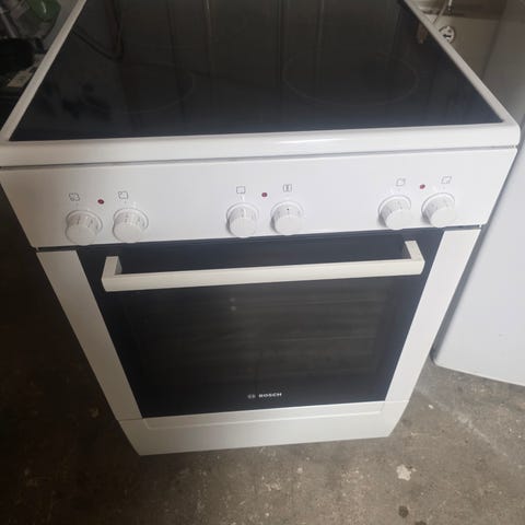 Komfyren er testet, og alle funksjoner ser ut til å fungere som de skal. Har keramisk platetopp med 4 soner og elektrisk stekeovn. Normal bruksslitasje etter alder.