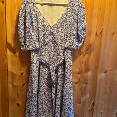 Ralph Lauren Denim & Supply hverdagskjole i størrelse XL. Kjolen er i blå bomull med småblomstret mønster i kontrastfarger.