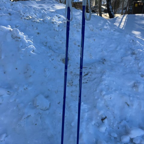Stavene har korkhåndtak og justerbare stropper.