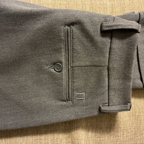 Les Deux bukser for herre i størrelse 30/32. Buksen er laget i polyester og har et klassisk, smalt snitt med beltehemper i linningen. Modellen har skrålommer foran og passepoilerte lommer bak. Flerfarget, mørk med fiskebeinsmønster. Egnet som penbukse eller til hverdagsbruk avhengig av styling. Kun brukt etpar ganger. Selges da den ikke passer stilen min.