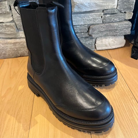 Högl vinterstøvler i størrelse 37. Støvlene er i svart skinn med kraftig, profilert såle og glidelås i siden for enkel av- og påtaking. Modellen har ankelhøy skaft og rund tå. Egnet som vinter- og høstfottøy i hverdagen.