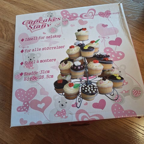 Settet inneholder blant annet popcake-stativ, former til kakekuler, popcake-pinner, engangssprøyteposer, plastposer til innpakking og bånd til knyting. Utstyret er beregnet for bruk på kjøkken til tilberedning, steking og servering av popcakes. Passer til hjemmebruk ved baking til for eksempel bursdager og andre anledninger.