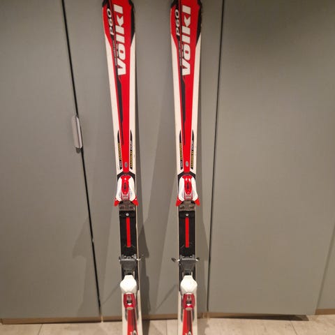 Völkl Adrenalin 20 alpinski med integrerte bindinger. Skiene har overflate i hovedsak sølv med sorte og røde detaljer. Undersiden er sort. Egnet til alpint bruk i preparerte bakker. Passer for brukere som ønsker et par klassiske carvingski med monterte bindinger. Lengde, bredde og mål på radius er ikke oppgitt og bør eventuelt måles ved behov.