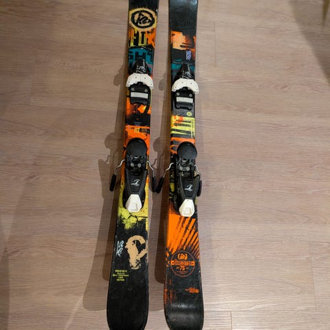 K2 twintip alpinski ca 135 cm med bindinger. Twintip-konstruksjon gjør at skiene kan kjøres både forlengs og baklengs. Leveres med monterte K2-bindinger. Egner seg til alpinbruk og park/freestyle-kjøring.