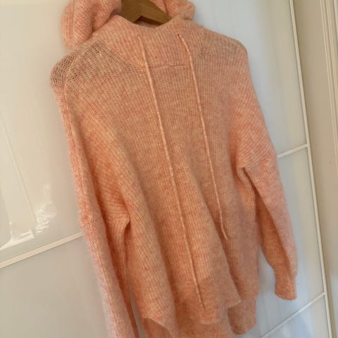 Deilig myk hettegenser i strikk i fin rosa farge