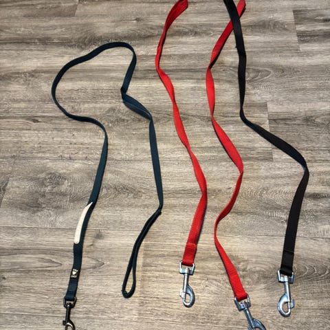Hunde bånd og et hundehalsbånd med bjelle.