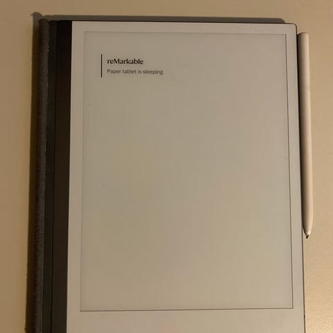 Selger en pent brukt reMarkable 2 med Marker Plus og grå Book Folio. Den fremstår som ny, uten synlige merker eller skader, og fungerer helt som den skal. Den er kun brukt noen få ganger i jobbsammenheng.