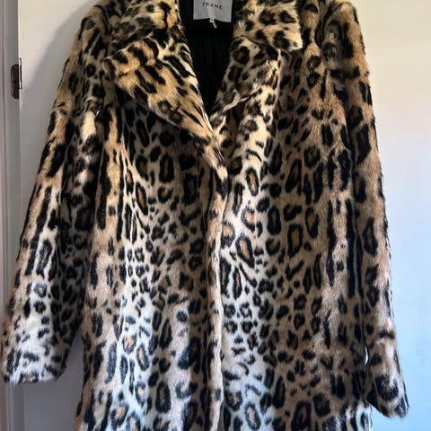 H&M jakke for dame i størrelse XS. Jakken er laget i fuskepels og har et flerfarget leopardmønster. Den har hel lengde ermer og lukkes foran. Passer som ytterjakke i overgangssesonger eller til bruk over annet tøy når det er kjøligere. Fôr på innsiden for økt komfort.
