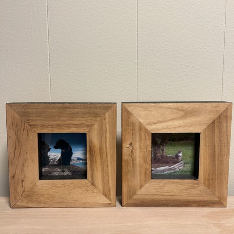 Bilderammer i forskjellige størrelser. Dimensjoner og pris er merket under hvert bilde.