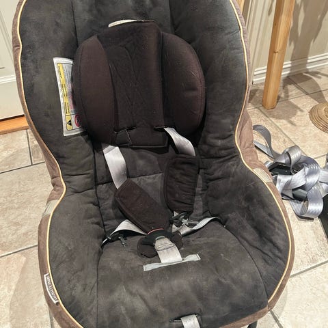 Gammelt bilsete gis bort. Vi brukte det som reservesete i ekstra bil. Isoporen er muligens sprø pga alder.