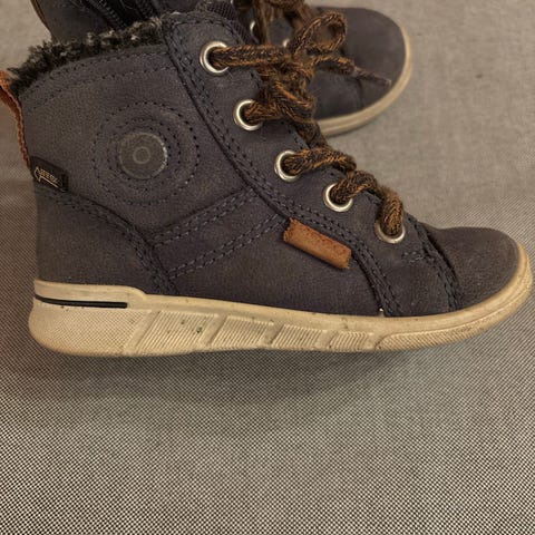 Ecco barnesko i størrelse 24 for unisex. Skoene er svarte med lys såle og har både lisser og glidelås på siden for enkel av- og påkledning. Overdelen er i et glatt materiale med tekstilpartier rundt ankelen for ekstra komfort. Yttersålen er mønstret for bedre grep. Egnet som hverdagssko for barn i overgangs- og høstsesong, avhengig av vær og temperatur.